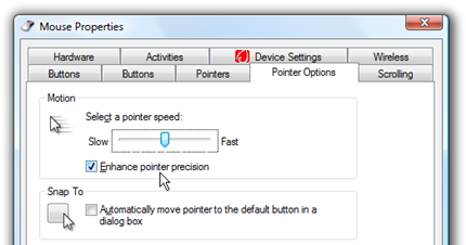 Nếu như chuột quá “nhạy” hoặc quá chậm đối với cảm giác sử dụng của bạn, hãy chỉnh tốc độ của chuột một cách tương ứng (Control Panel/ Mouse/ Pointer Options). Điều này thì chắc ai cũng đã biết. Tuy nhiên, bạn hãy để ý đến một tính năng mang tên “Enhance Pointer Precision”.